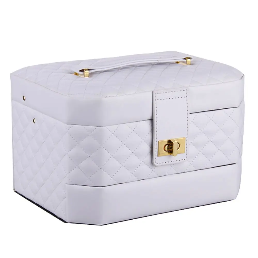 Introducing our exquisitely designed jewelry box, a harmonious blend of functionality and style tailored to meet the needs of the modern trendsetter. With its sleek octagonal shape, this box exudes sophistication and depth, elevating your jewelry storage experience.Crafted for convenience, our jewelry box features a sturdy handle, allowing for effortless portability wherever your adventures take you. The exterior boasts a chic diamond-stitched pattern, adding a touch of elegance to any space. This meticulous attention to detail extends to the automatic door mechanism, which smoothly glides open to reveal three layers of organized bliss. -